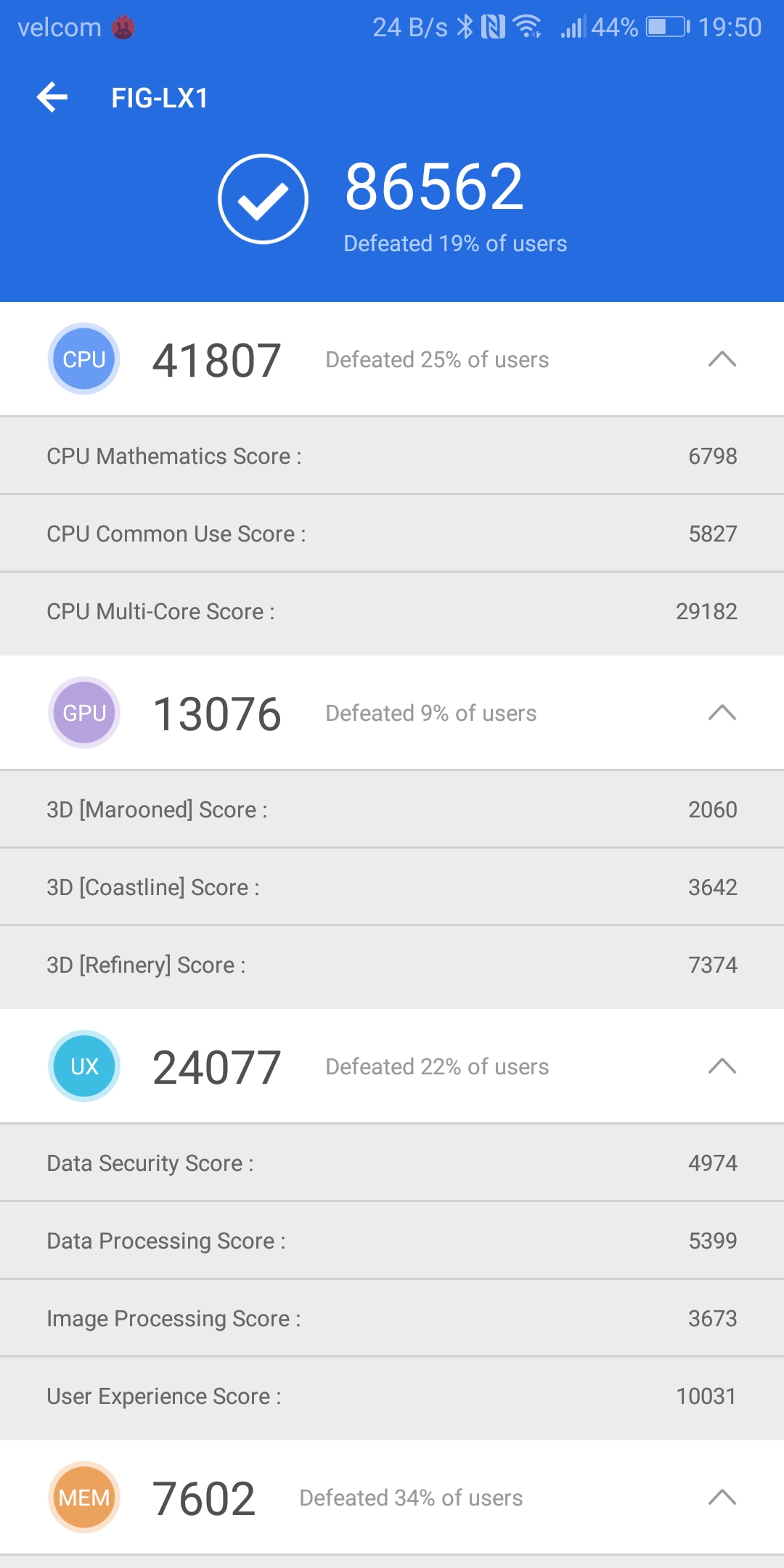Быстродействие по AnTuTu. У Huawei P20 Lite - 67 тысяч.