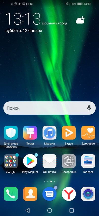 Вот так экран выглядит с отключенной "монобровью". (Почему-то эта "монобровь" страшно бесит многих пользователей: я до сих пор не могу понять почему. Ну и кроме того, в Huawei она отключается, раз уж бесит.)
