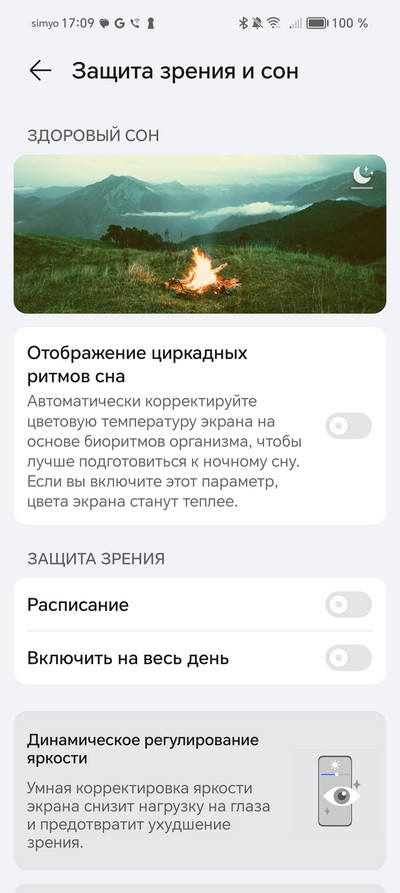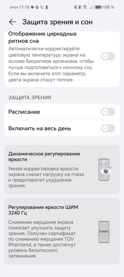 Защита зрения тут достаточно продвинутая, и есть еще дополнительное подавление мерцания.