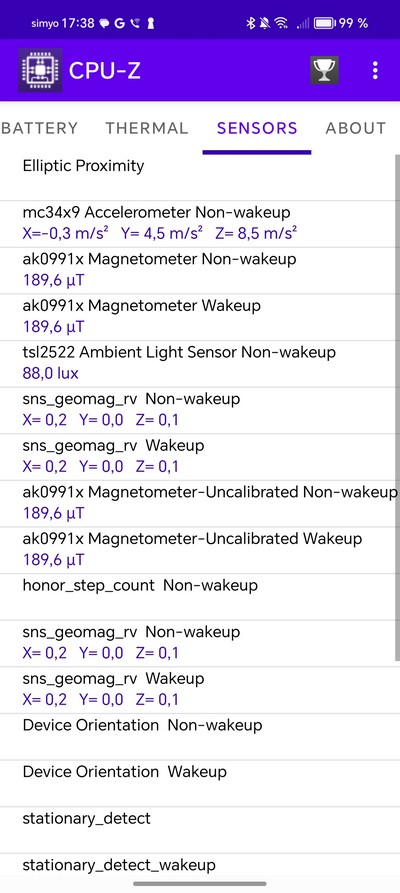 Дополнительно: акселерометр, датчик освещенности, виртуальный датчик приближения