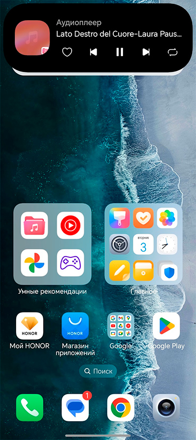 Из особенностей замечу, что на островке с камерой смартфон может выводить виджет работающего в фоне приложения - например, аудиоплеере. И при щелчке по нему виджет раскрывается - это удобно.