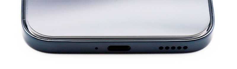 На нижней грани - микрофон, порт Type-C и отверстия над монодинамиком.