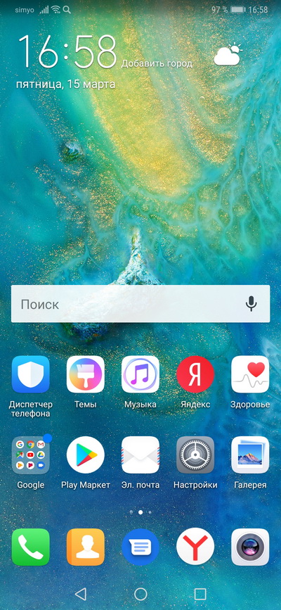 Оболочка EMUI 10. Главный десктоп.