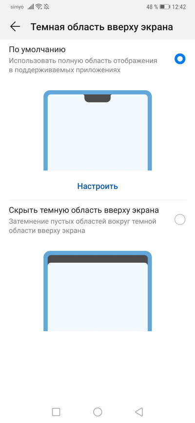Ну и, как обычно у смартфонов Huawei, информационную строку можно сделать черной - и тогда никакой "челки" чисто визуально не будет.
