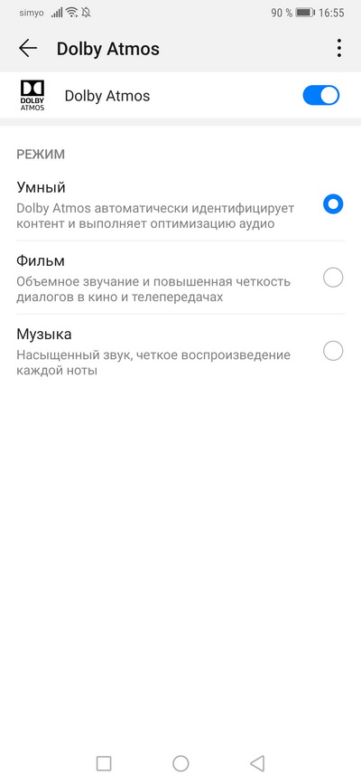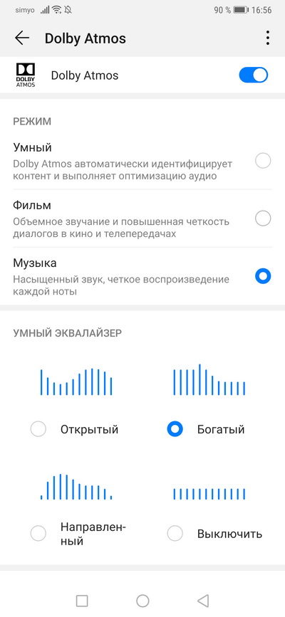 Для проводных наушников доступен режим Dolby Atmos, на котором можно выставлять различные эффекты звучания - они интересные и имеют смысл.