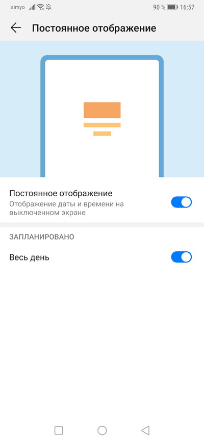 Режим постоянно включенного экрана - очень удобная штука, аккумулятор почти не расходует.
