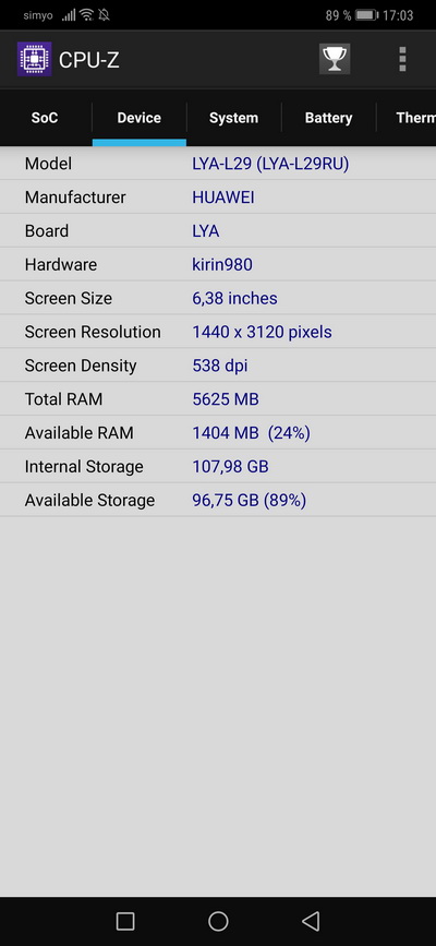 Процессор: HiSilicon Kirin 980, 7 нм, 8-ядерный, 2 × Cortex A76 2,6 ГГц + 2 × Cortex A76 1,92 ГГц + 4 × Cortex A55 1,8 ГГц