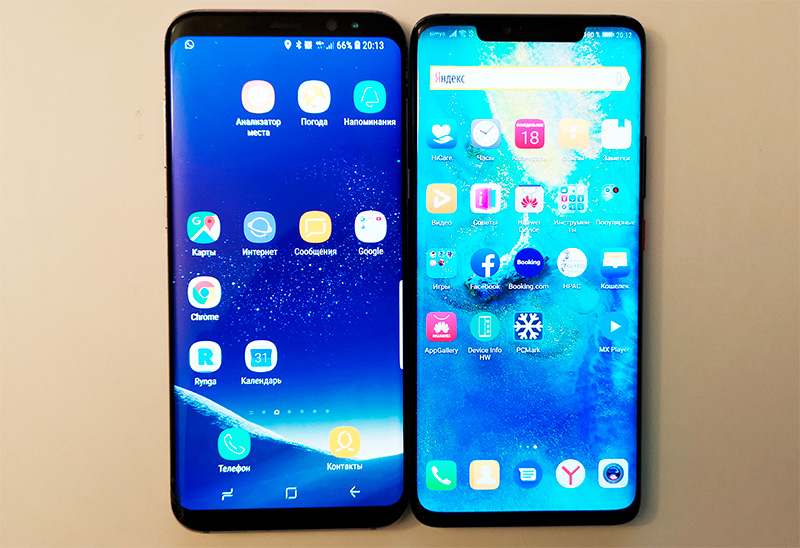 Материалы и качество - ожидаемо отличные, в руки такой смартфон взять приятно. Вот он рядом с Huawei P20 Pro.