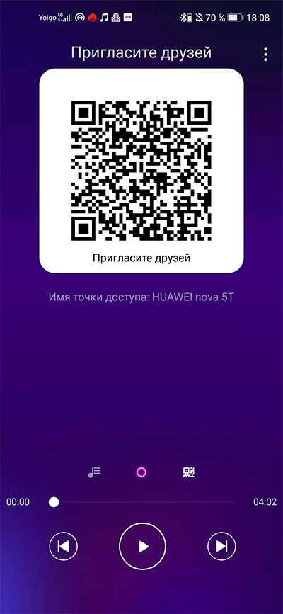 Кстати, тут у аудиоприложения появилась возможность создавать объемное звучание - так называемый эффект вечеринки. Теоретически это работает следующим образом: создается Wi-Fi-сеть, к которой можно подключиться через QR-код, и с приложения можно каждое из подключенных устройств назначить определенным каналом. Практически - ни к одному из своих нескольких смартфонов это подключить не удалось. Я подозреваю, что такое будет работать только со смартфонами Nova.