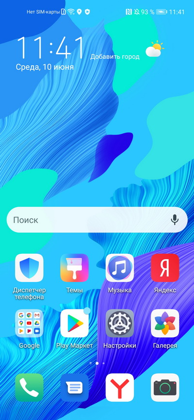 Операционная система Android 10, оболочка EMUI 10.0.0. Главный десктоп, второй десктоп.