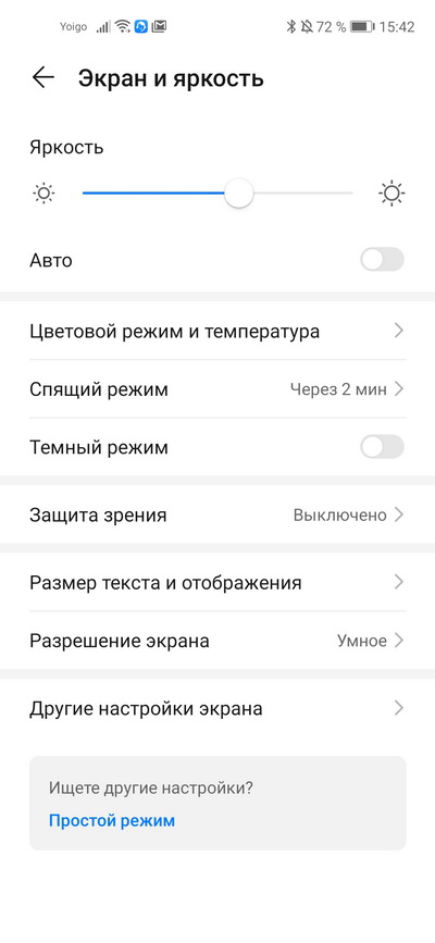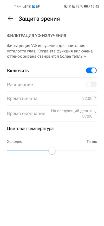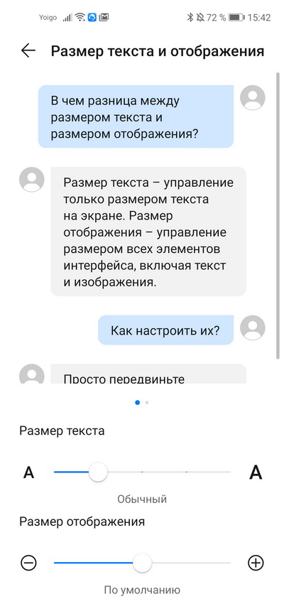 Есть режим защиты зрения, настройки размера текста и масштаба отображения.