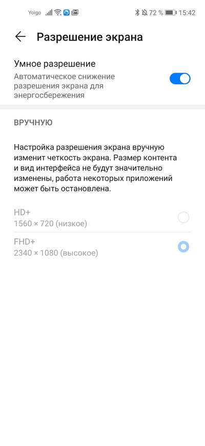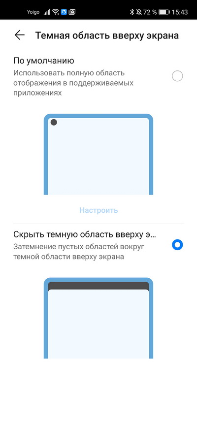Можно включать умное разрешение - для энергосбережения. Также можно скрывать глазок камеры, делая черной область со строкой состояния (видно, как это выглядит на скриншоте справа).