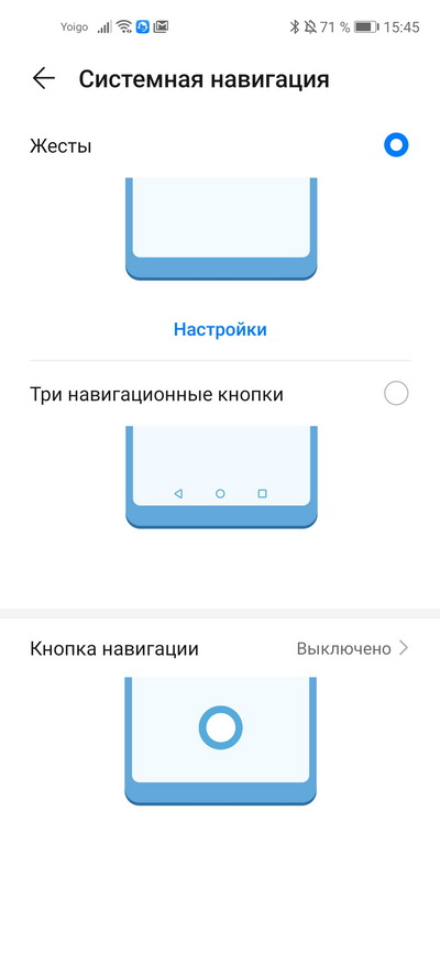 Есть несколько вариантов управления. Стандартные андроидные жесты, три навигационные кнопки (настраиваемые), также можно включать кнопку навигации. И здесь можно настраивать дополнительные жесты.