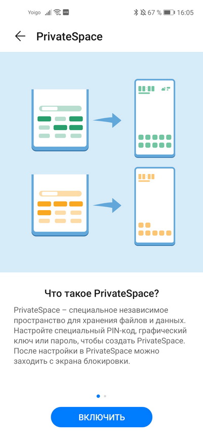 Подробно о настройках EMUI 10 я уже писал, не буду повторяться. Отмечу только, что здесь есть настройка защищенного приватного пространства.