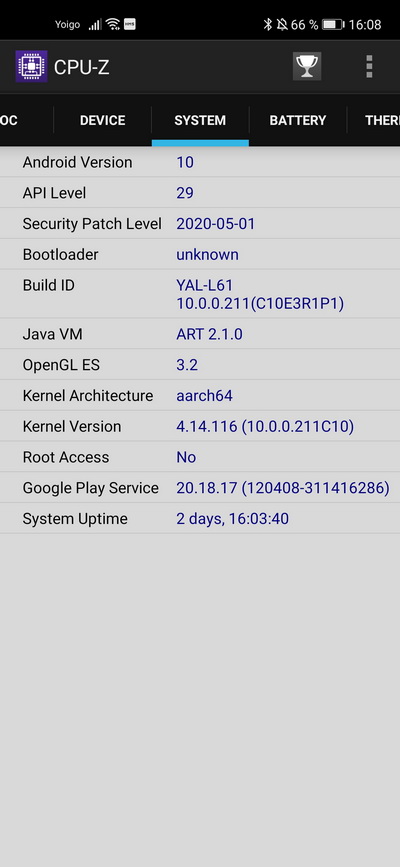 Операционная система: Android 10, оболочка EMUI 10.0.0