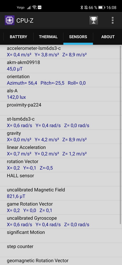 Дополнительно: датчики освещенности, приближения, гравитации, гироскоп, компас, датчик Холла