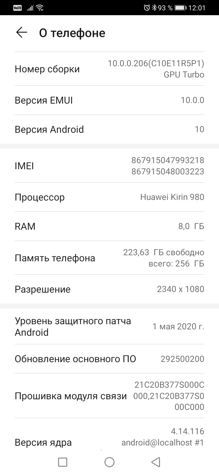 Android 10, оболочка EMUI 10.1.