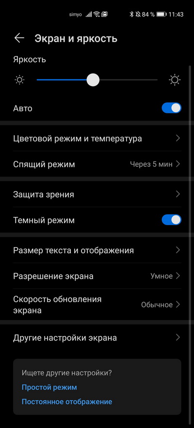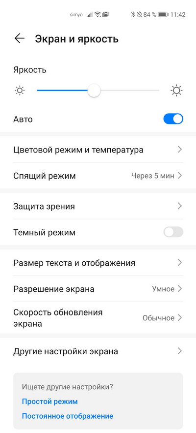 Настройки экрана.
