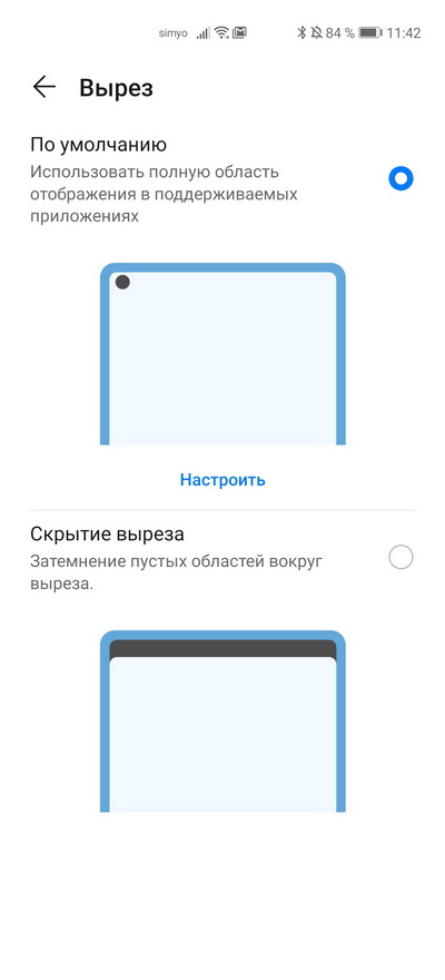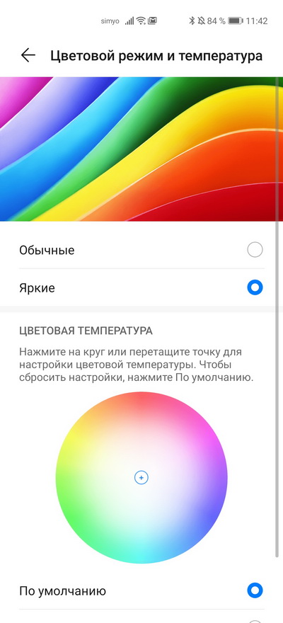 Вырез, как обычно, можно скрыть. Цветовой режим и температура настраиваются.