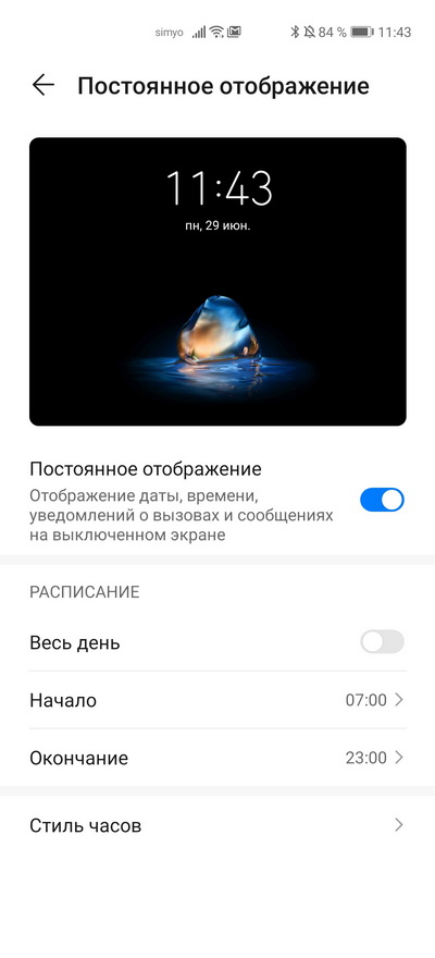 А как поставить? У меня на Always On в P30 Pro только включить или выключить режим и на весь день или по расписанию