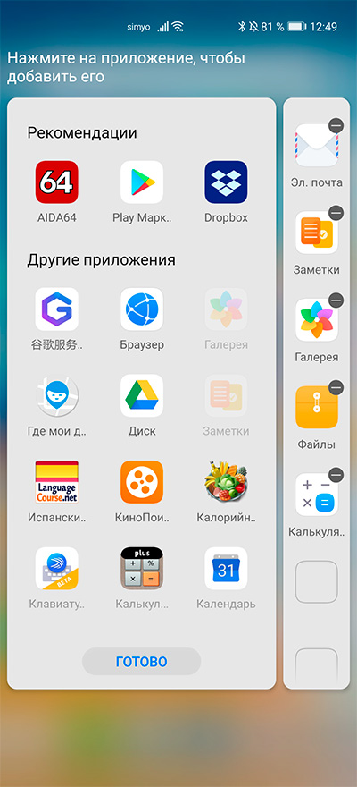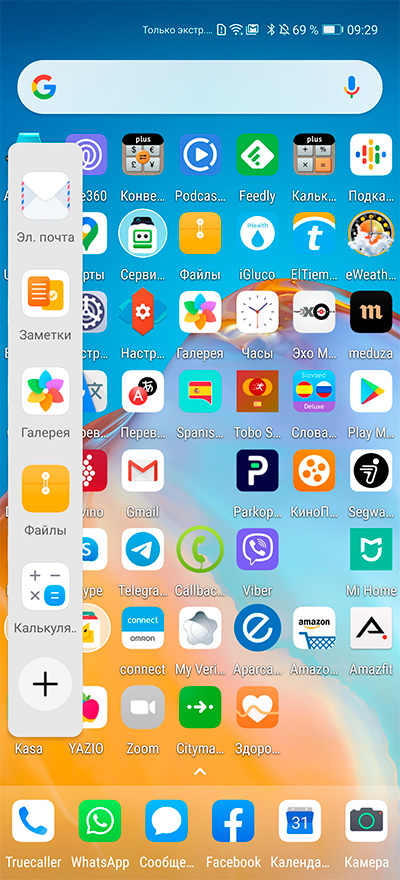 Совершенно случайно выяснил, что кроме стандартных здесь есть один специфический жест от EMUI: если сделать жест от левого или правого края экрана и задержать палец, то появится настраиваемая панель приложений. И в P30 Pro такое тоже есть. Подозреваю, что это во всех смартфонах Huawei и Honor. Случайно наткнулся, в обзорах я никогда упоминаний об этом не встречал.