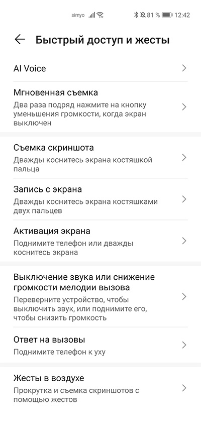 Дополнительно можно настроить некоторые жесты.