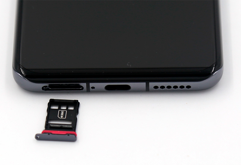 На нижней грани расположены отсек для сим-карт и карты памяти (вместо второй сим-карты), микрофон, порт Type-C и динамик.