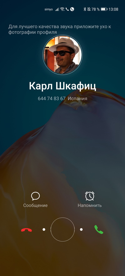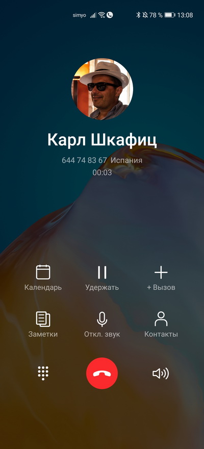 Входящий звонок и режим разговора.