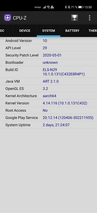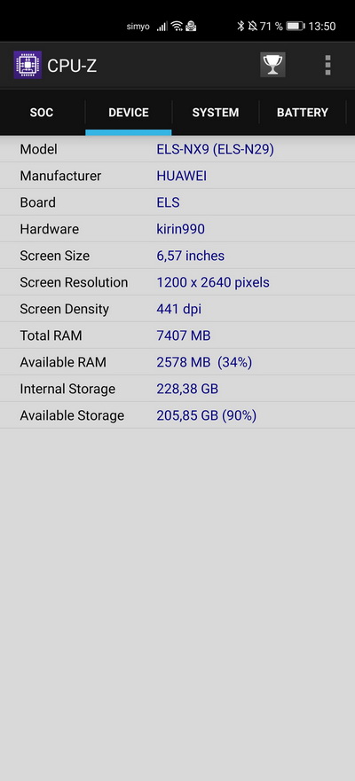 Платформа: Huawei Kirin 990 5G (7 nm+) Octa-core (2 × 2,86 ГГц Cortex-A76 & 2 × 2,36 ГГц Cortex-A76 & 4 × 1,95 ГГц Cortex-A55)