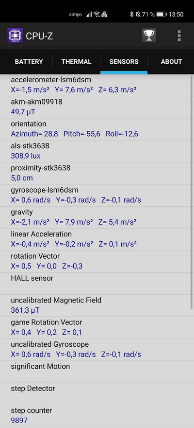 Дополнительно: датчики жестов, гравитации, освещенности, приближения, цветовой температуры, Холла, гироскоп, компас