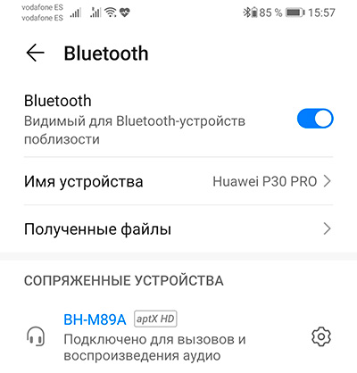 На всякий случай переподключил наушники к P30 Pro. Подключились, как и полагается, по aptX HD.