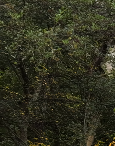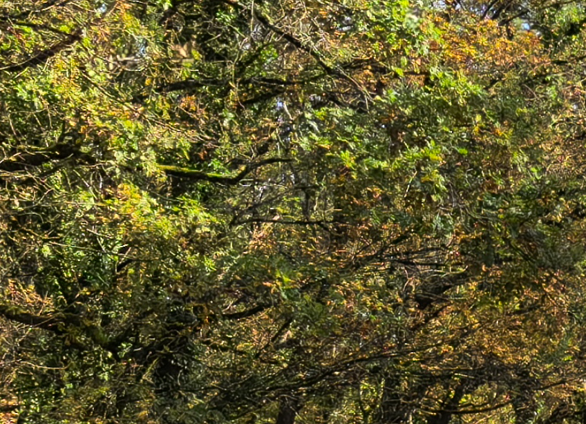 И вот тут тоже. Тут даже не мыло, как ранее написали, а именно каша. При этом фотография-то как будто чёткая, даже не сказать, что сильно перешарплена (я видел перешарпы и хуже), условия съёмки прекрасные (ясный денёк), но ни одного отдельного листочка, например, не видно. Тут явно заходил AI, аки слон в посудную лавку.