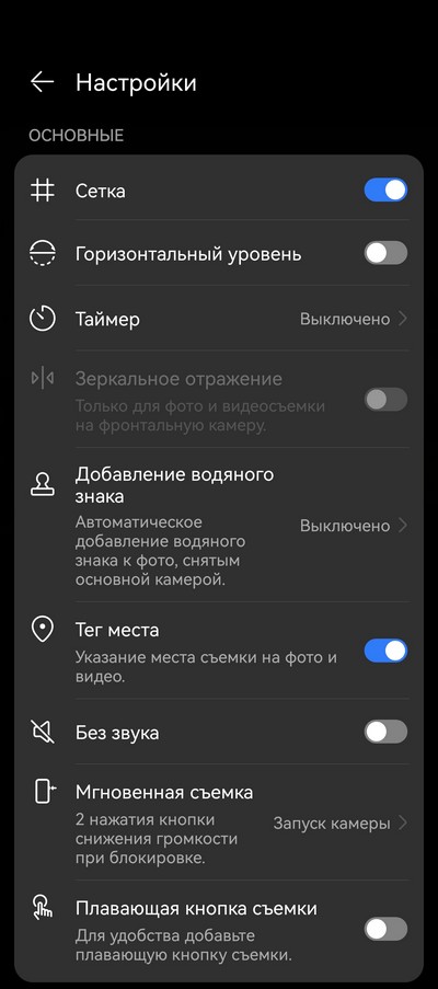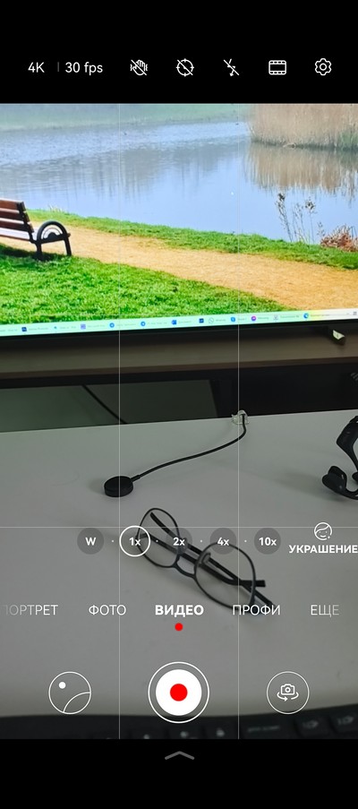 Интерфейс камеры. Снизу идут режимы, кнопка съемки, переключение между основной камерой, сверхшириком, двукратным цифровым зумом, длиннофокусником и цифровым 10-кратным зумом. Сверху - настройки. Также дополнительные настройки выдвигаются снизу.