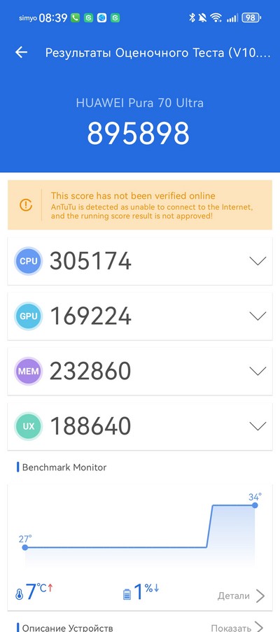Смартфон довольно увесистый, и по ощущения даже более тяжелый, чем мой Samsung, хотя Samsung весит на 8 граммов больше. Видимо, это ощущение возникает из-за того, что Pura 70 Ultra более узкий.