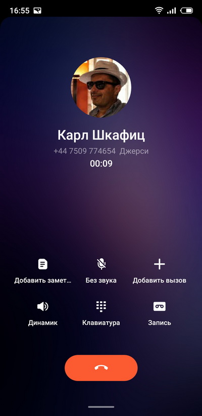 Входящий звонок и режим разговора. При разговоре есть запись - многим пользователям это важно.
