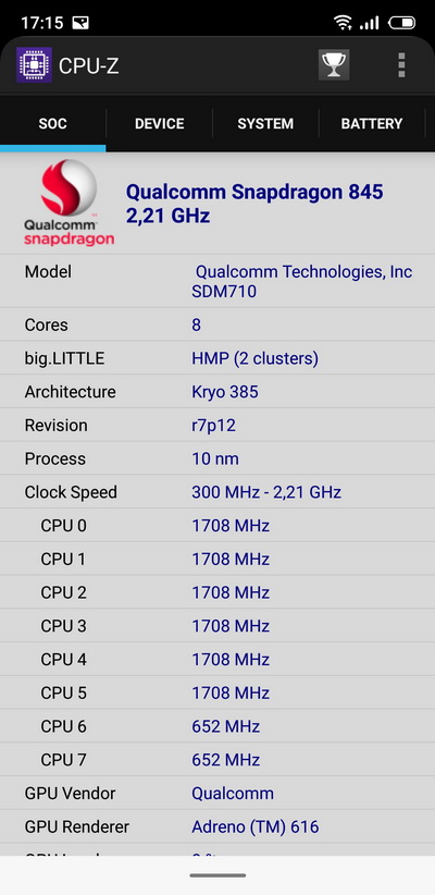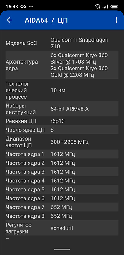 Процессор: Qualcomm Snapdragon 710, 8-ядерный