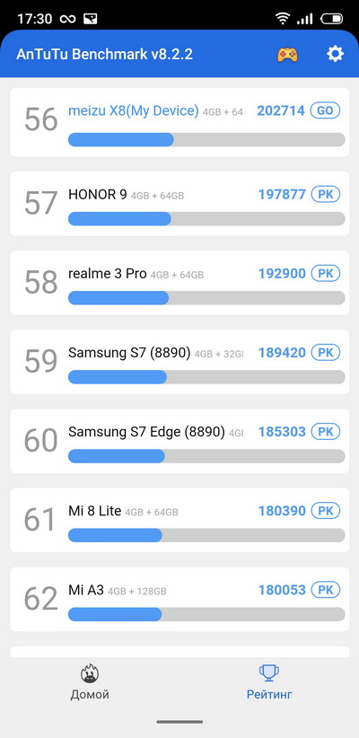 Рейтинг по AnTuTu. У Meizu 15 Lite - в два раза меньше.