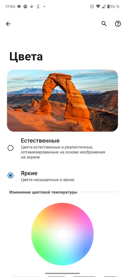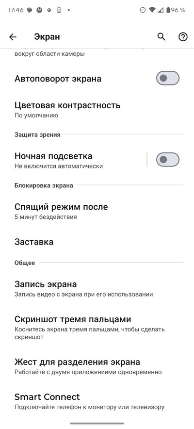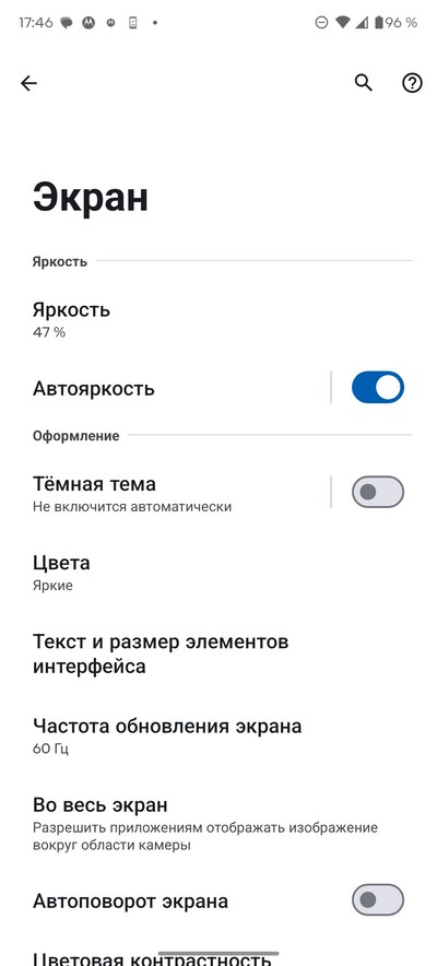 В настройках экрана есть темный режим, режим чтения, можно настраивать размер шрифта и масштаб. Частота обновления может подбираться автоматически, а может задаваться вручную.