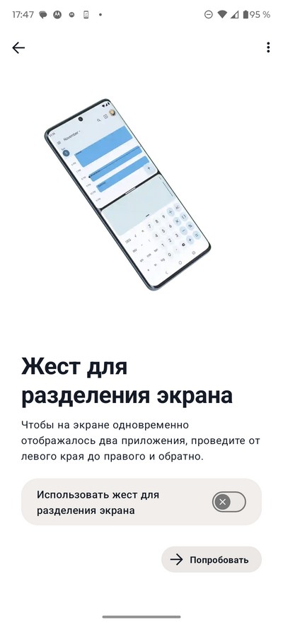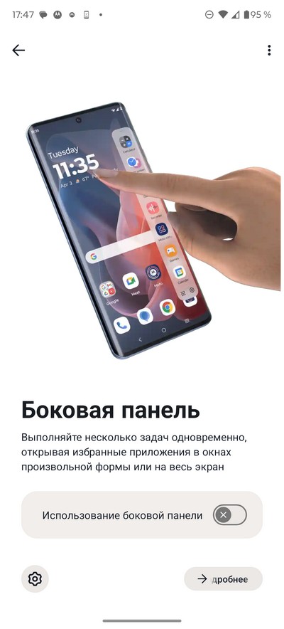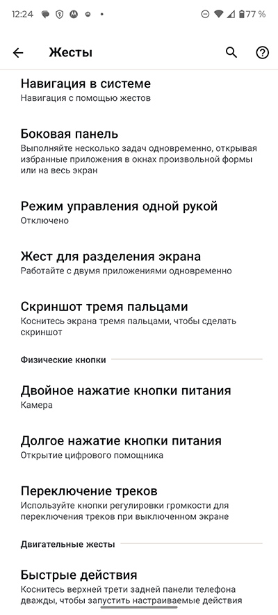 Есть многозадачность (два приложения на экране), также настраиваются различные жесты, которые у Motorola - очень продвинутые.