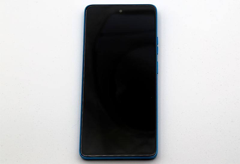 Рама смартфона выполнена из пластика. Экран совершенно плоский, нет никаких скруглений. Глазок селфи-камеры расположен сверху по центру.