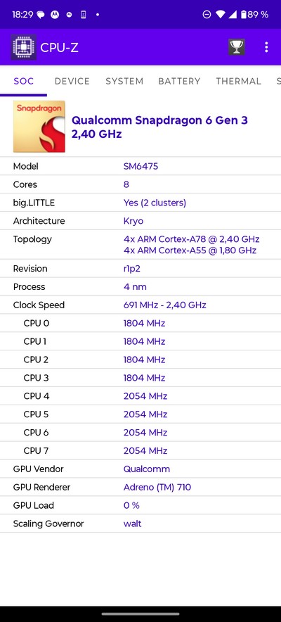 Процессор: Qualcomm SM6475-AB Snapdragon 6 Gen 3 (4 nm)