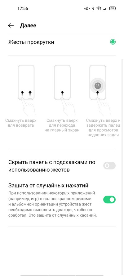 С управлением и жестами здесь все в порядке. Есть аж три варианта управления: экранные кнопки (настраиваемые), двусторонние жесты смахивания.
