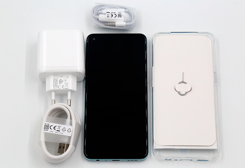 Комплект поставки: смартфон, адаптер питания, кабель USB - Type-C, проводная гарнитура, силиконовый чехол, руководство пользователя, инструмент для извлечения вставки под симкарты и карту памяти.