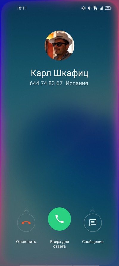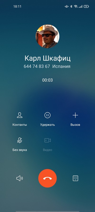 Входящий звонок, режим разговора.