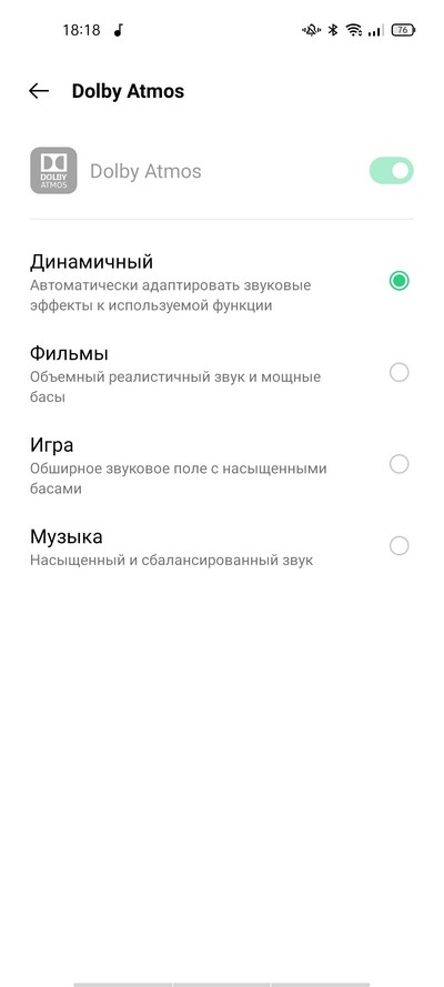 Есть также режим улучшения звучания Dolby Atmos.