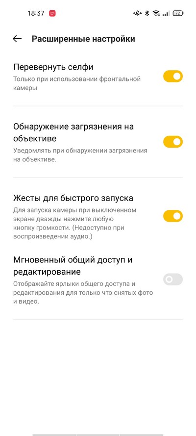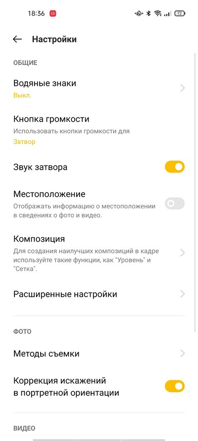 Интерфейс камеры ColorOS. Сверху - пиктограммы переключений режимов и дополнительное меню.