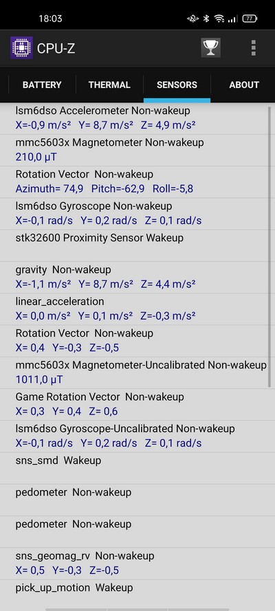 Дополнительно: датчики приближения и освещения, датчик магнитного поля, акселерометр, гироскоп