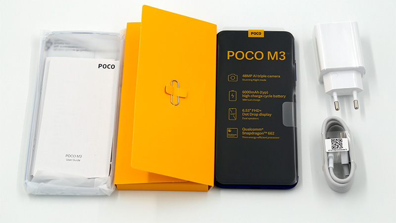 Poco X3 был в чер-р-рной-пречерной коробке, а тут расцветка очень веселенькая, желтая. Кстати, желтый вариант окраски крышки корпуса этого смартфона - самый эффектный, как выяснилось.