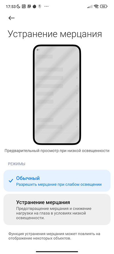 А какие у режима устранения мерцания минусы, он как-то картинку ухудшает, или яркость режет, или что? Почему он в некоторых телефонах есть, а в некоторых нет? Это вообще аппаратная фишка, или просто программный костыль? И почему он изначально не включен? Вряд ли же кому то нравиться в мерцающий экран смотреть.