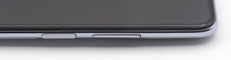 На боковой грани - кнопка включения со сканером отпечатка, кнопка регулировки звука.
